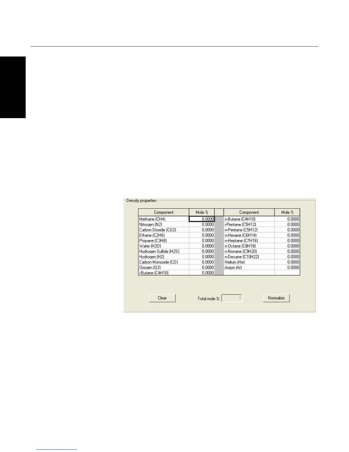 gas composition. The total mole % must add up to 100%.