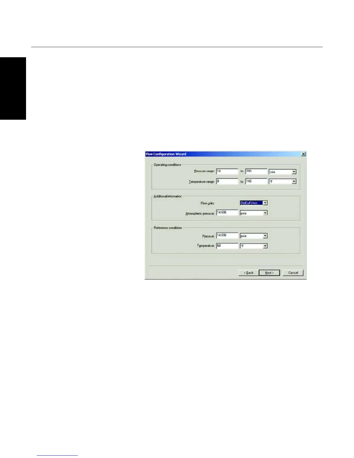 3. If desired, modify the atmospheric pressure, flow units, or reference