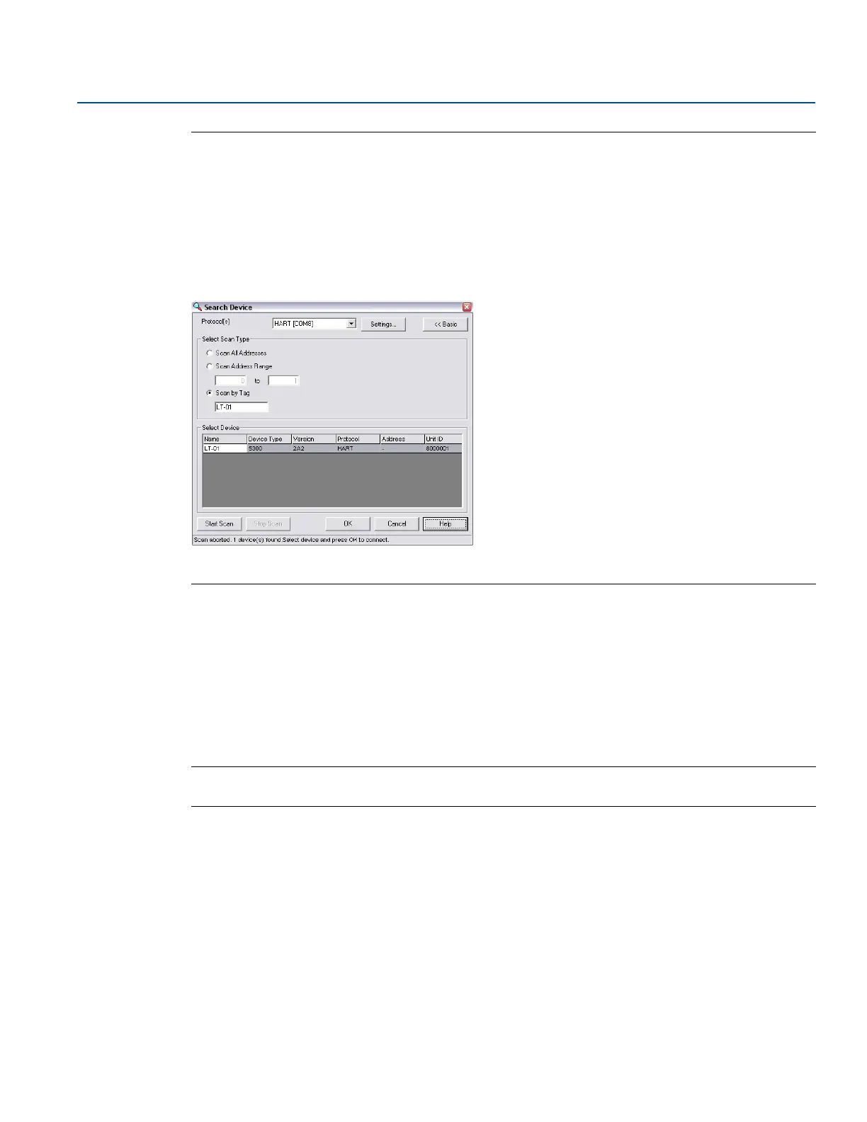 1. Select the Scan by Tag option in the Search Device window in RRM and enter the HART Device Tag of