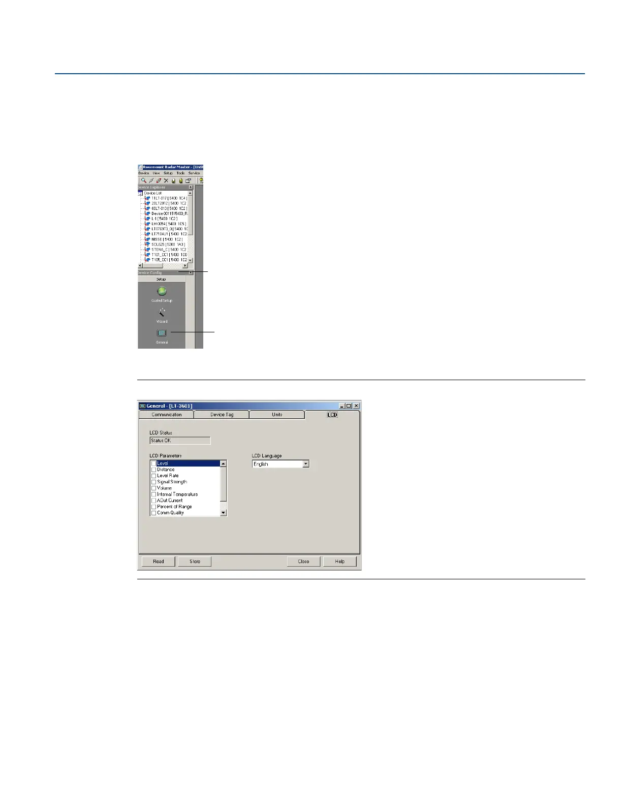 4. Select the Store button to save the LCD display settings in the transmitter database.