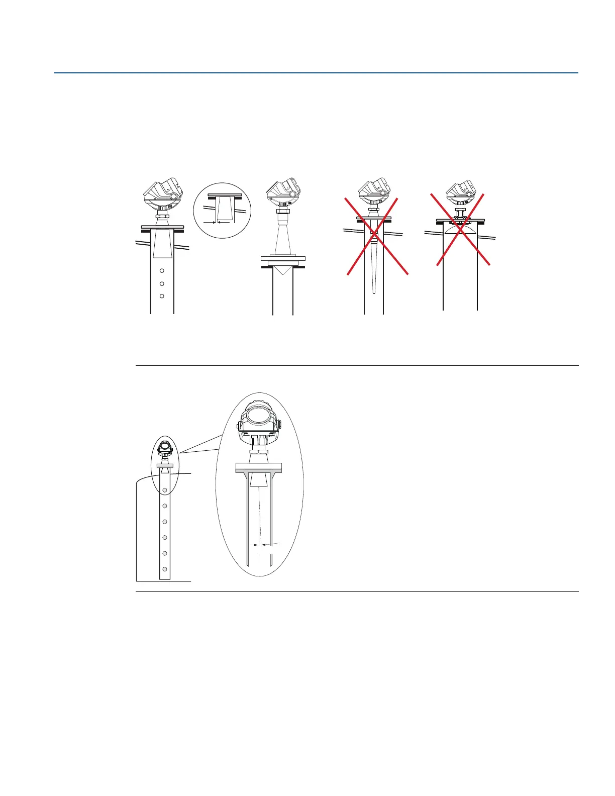 When the transmitter is mounted on a still-pipe, the inclination should be within 1°. The gap between