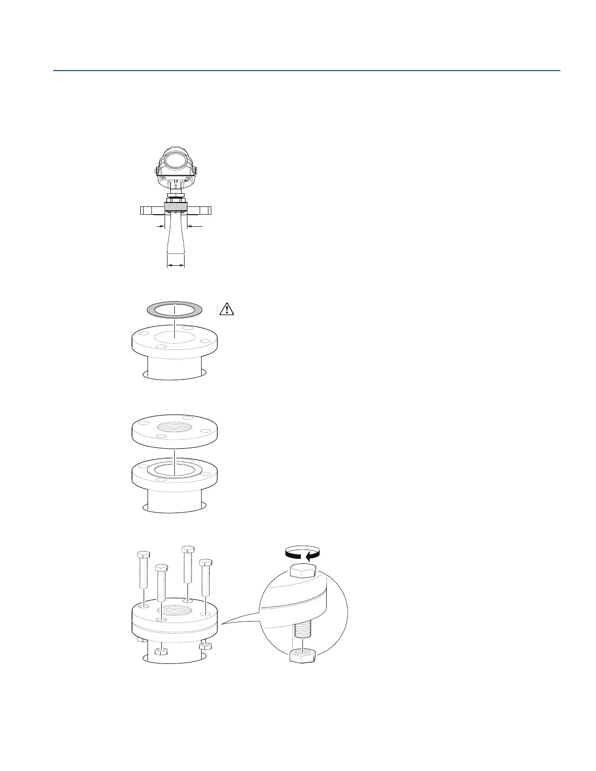 3. Tighten the bolts and nuts with sufficient torque for the flange and gasket choice.