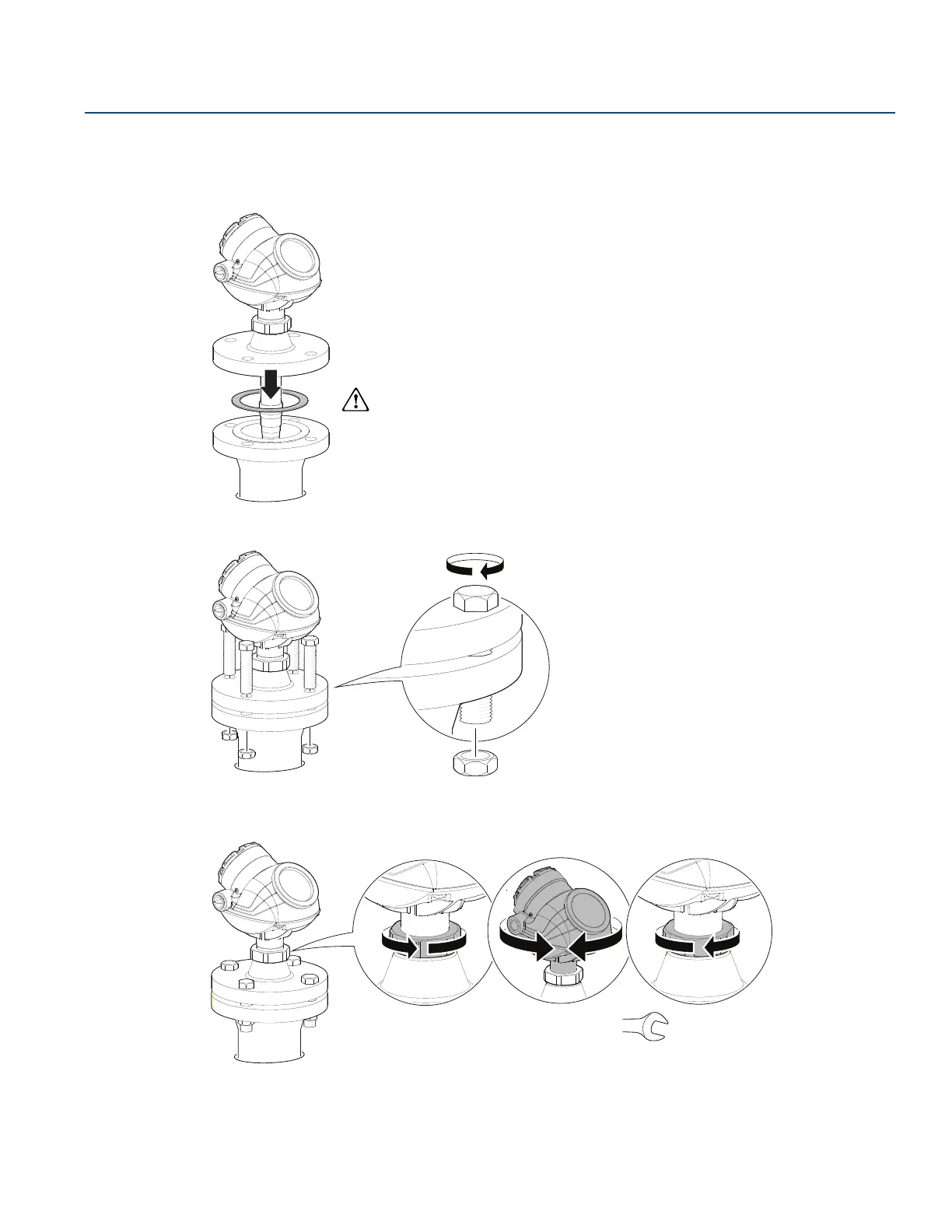1. Lower transmitter with antenna and flange into the tank nozzle.