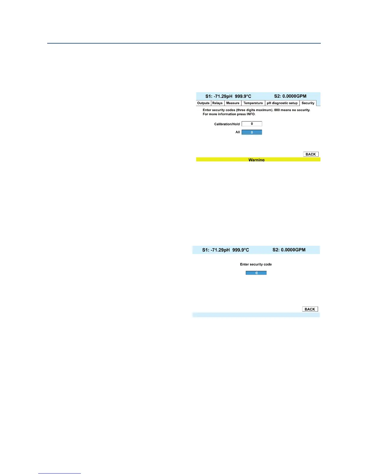 When entering the correct access code for the Calibration/Hold security level, the