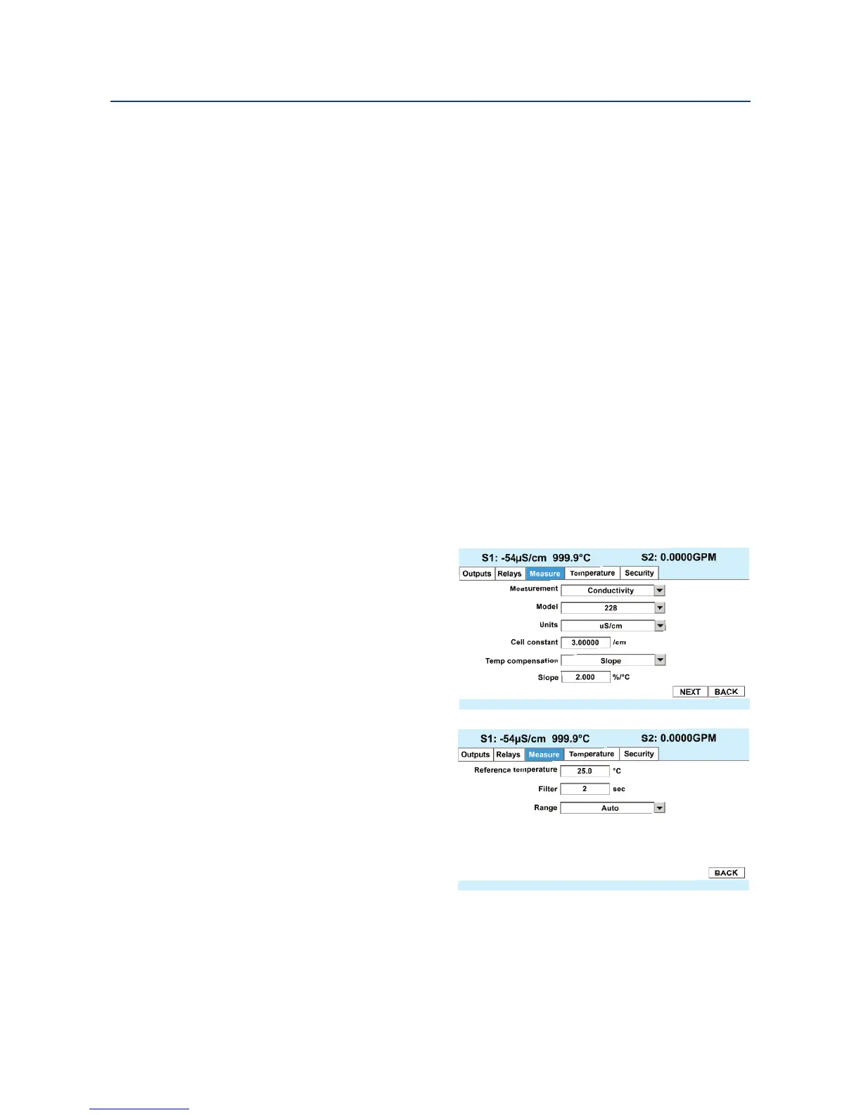 The section describes how to configure the 56 analyzer for conductivity measurements using