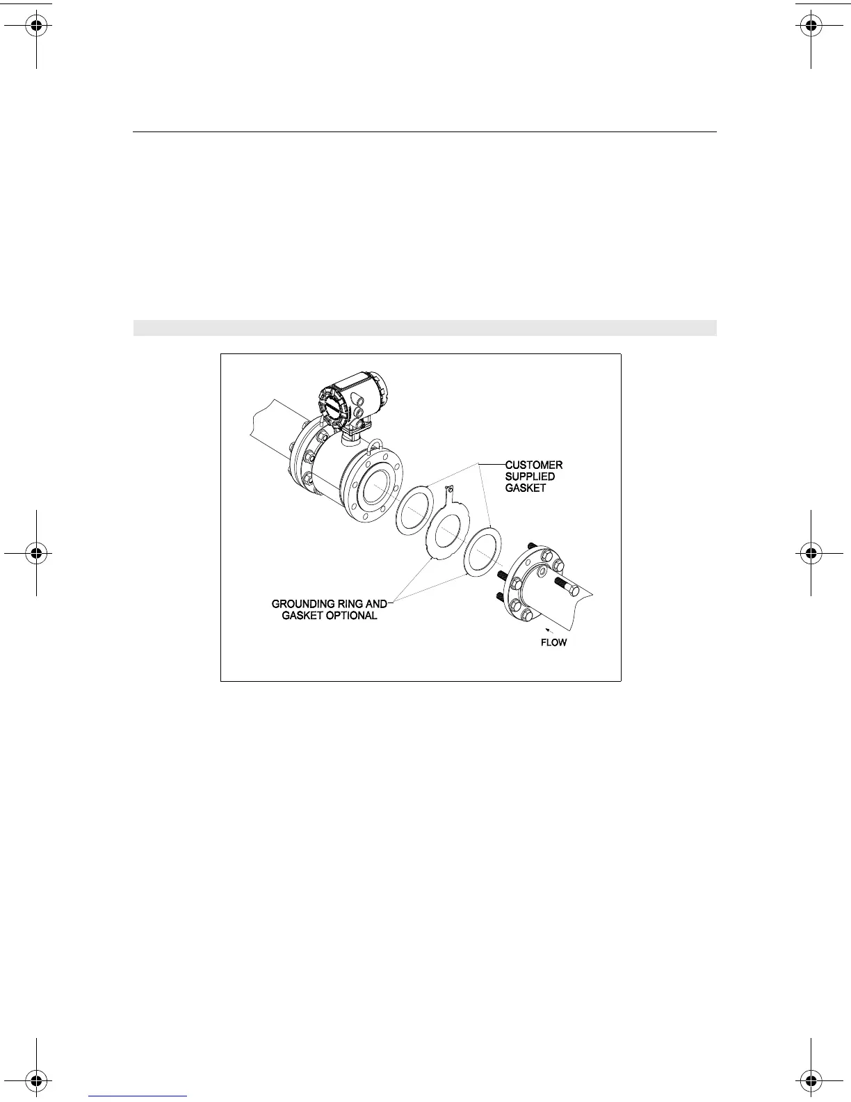 The sensor requires a gasket at each of its connections to adjacent devices or piping. The gasket