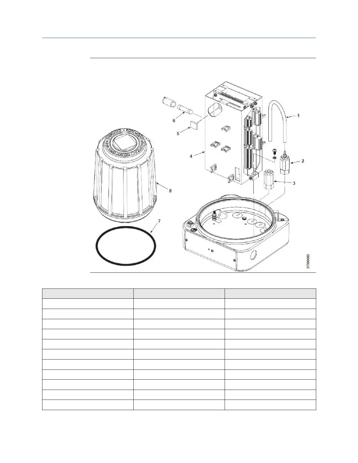 Table 11-4: Electronics Housing Components for Rosemount OCX8800 with Remote Electronics