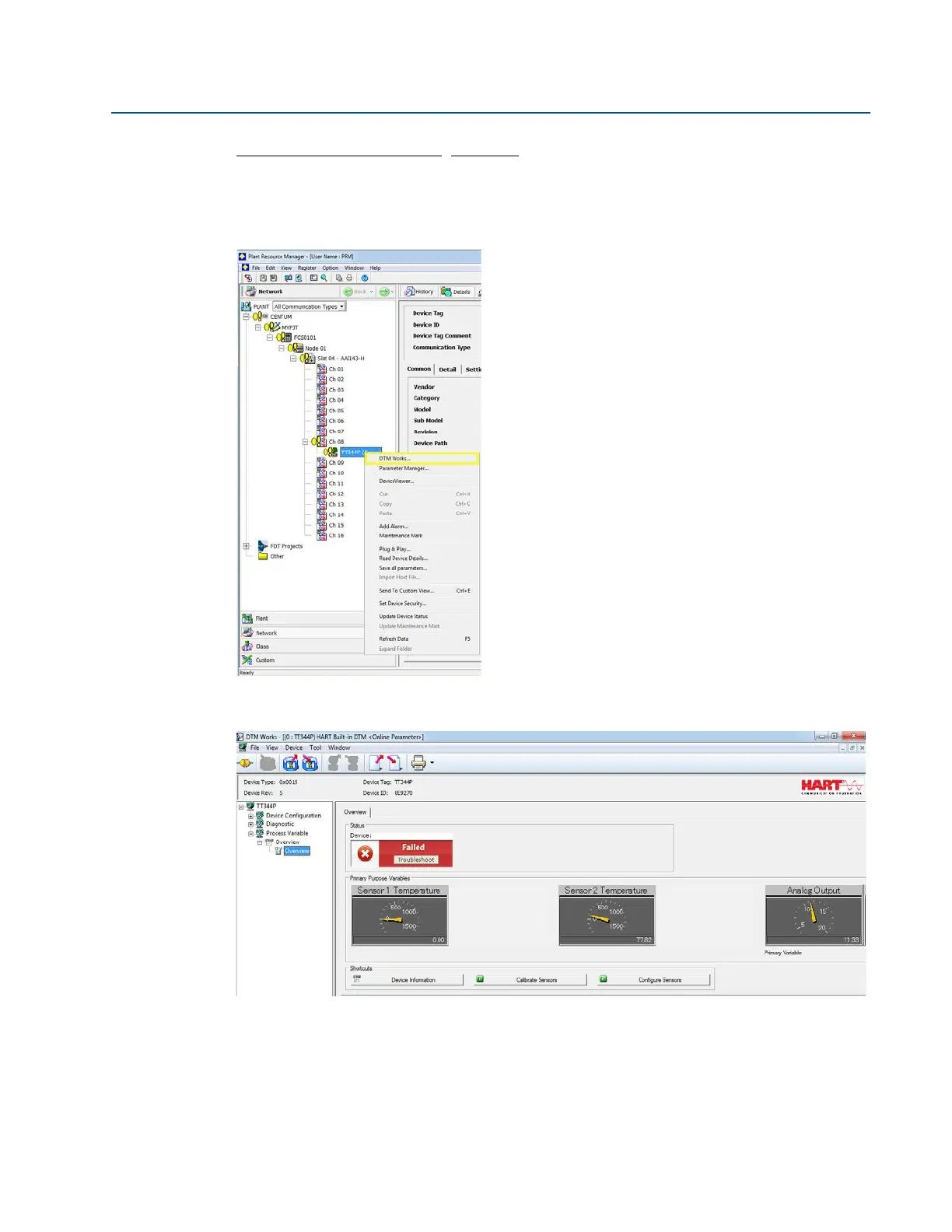 choose DTM Works… This will open the DTM (Device Task Manager).