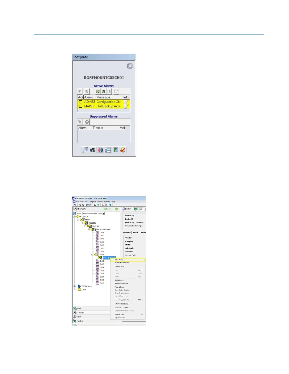 When the primary sensor fails, alarms will be displayed in the PRM (Plant Resource Manager) via