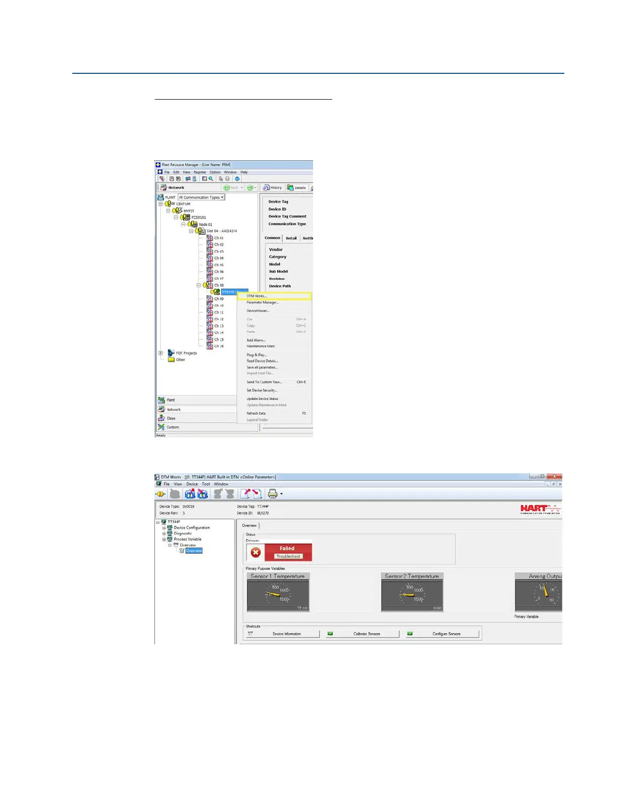 device, and choose DTM Works… This will open the DTM (Device Task Manager).
