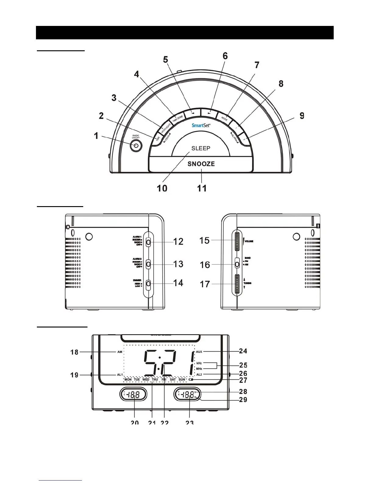 Emerson SmartSet CKS9005 - Location of Controls; Top Panel Controls; Side Panel Controls