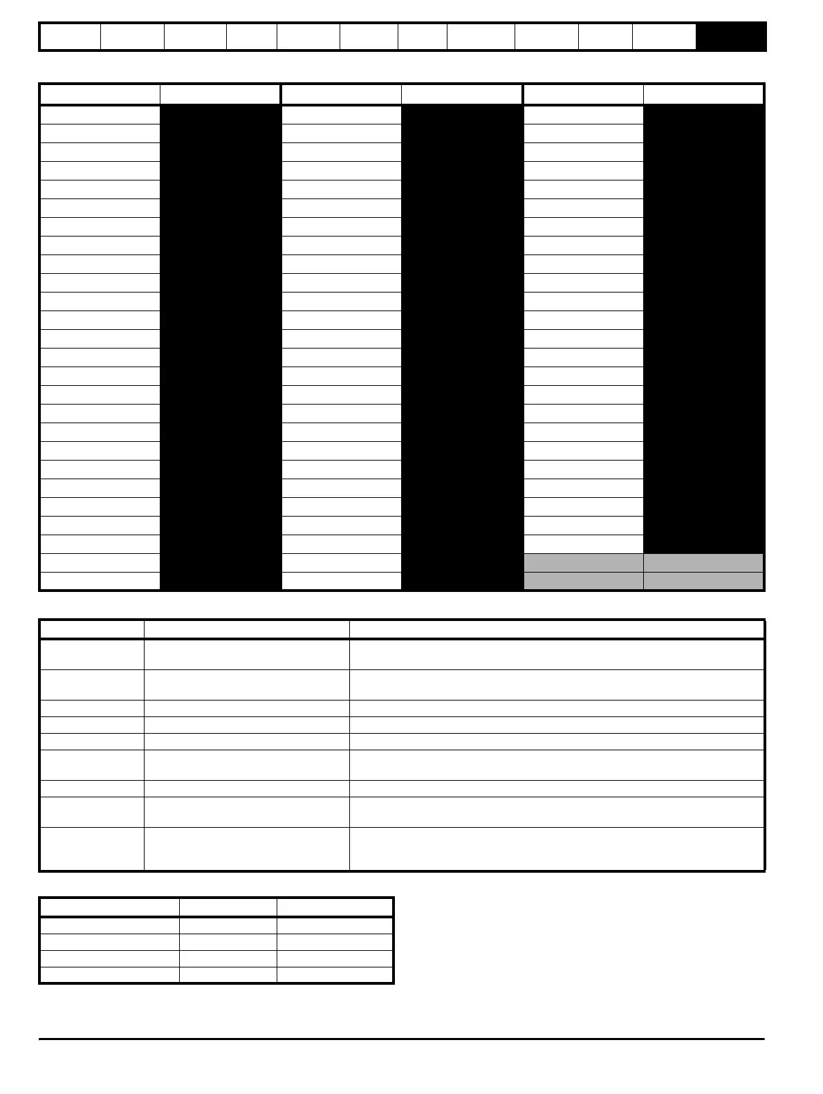 Emerson SP1202 - Serial Communications Look-Up Table; Trip Group Catergories; DC Voltage Trip and Restart Levels