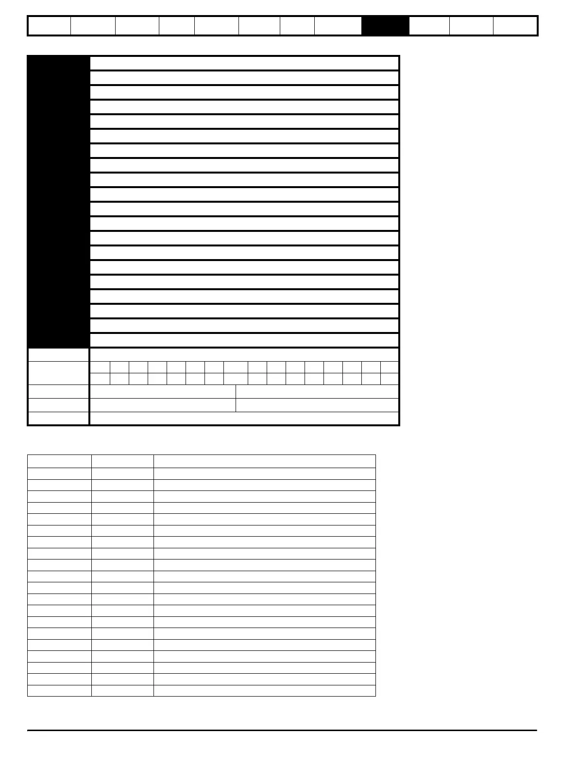 These parameters define the parameters that reside in the programmable area in menu 0.