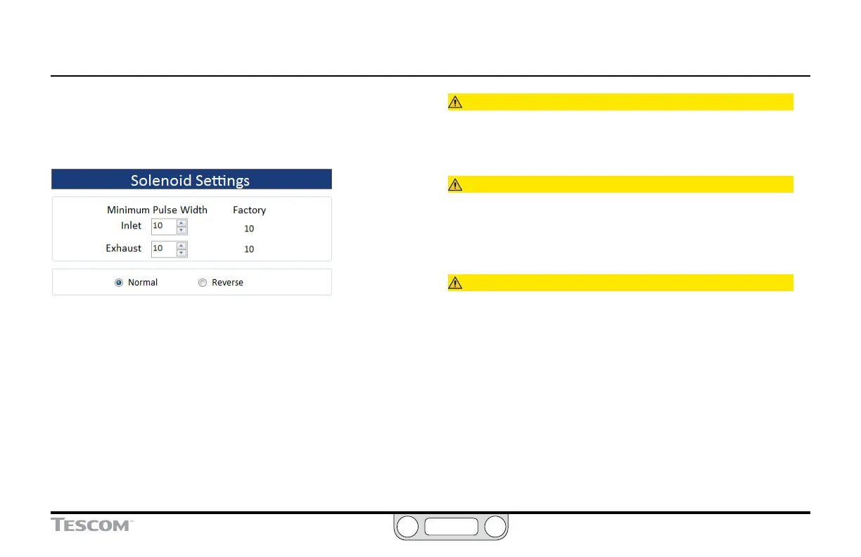 pulse width for the inlet and exhaust solenoid valves in the ER5000.