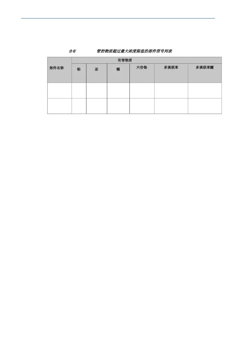 X: Indicate that said hazardous substance contained in at least one of the homogeneous materials used for this part is above