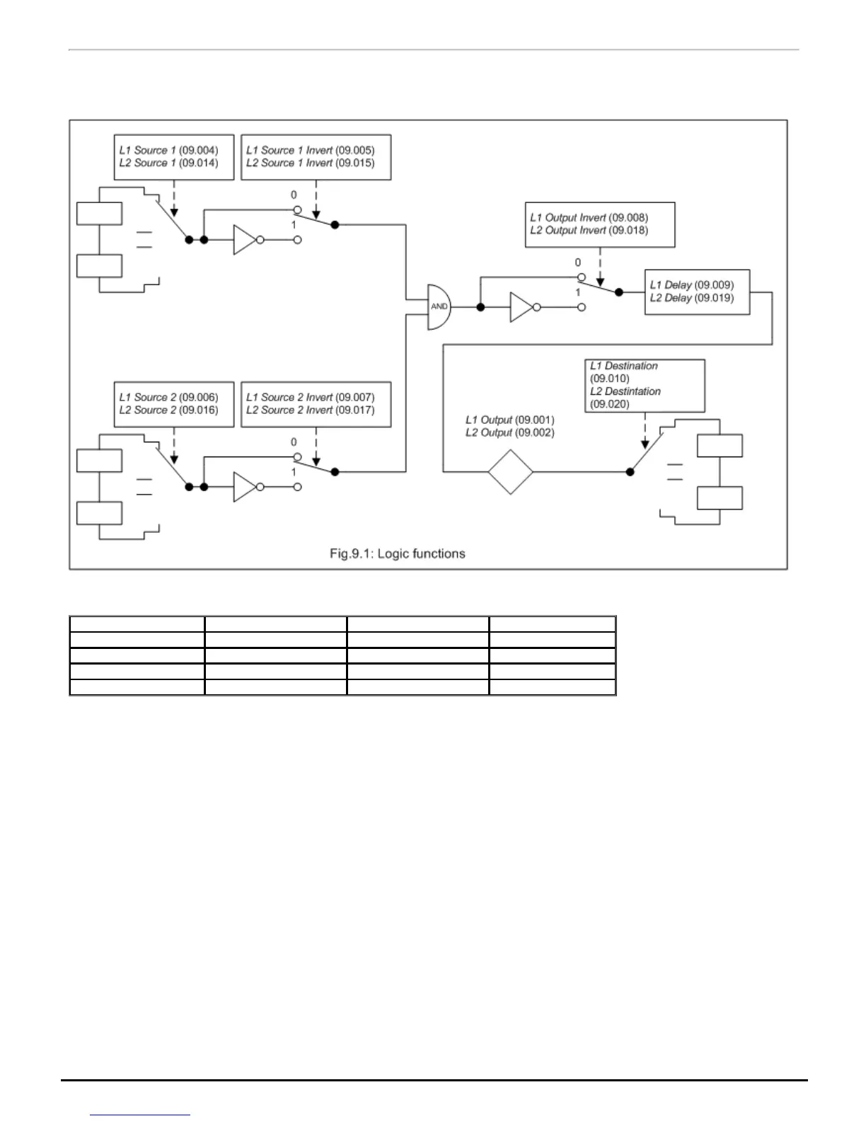 A delay function is provided at the output of the logic functions. If LogicFunction1Delay (09.009) or LogicFunction2Delay (09.019) is positive then the