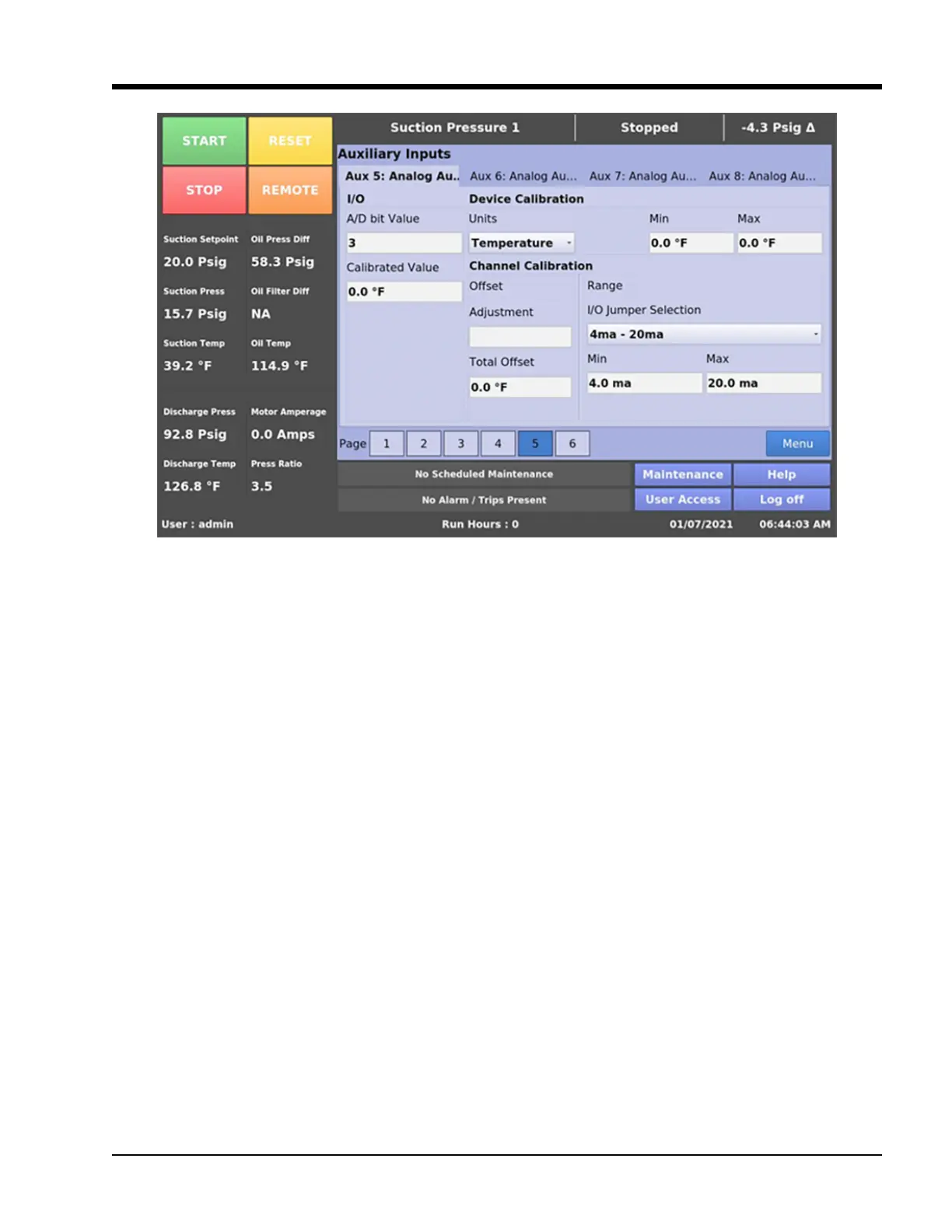 Figure 8-12. Instrument Calibration Screen Page 5 – Auxiliary Inputs