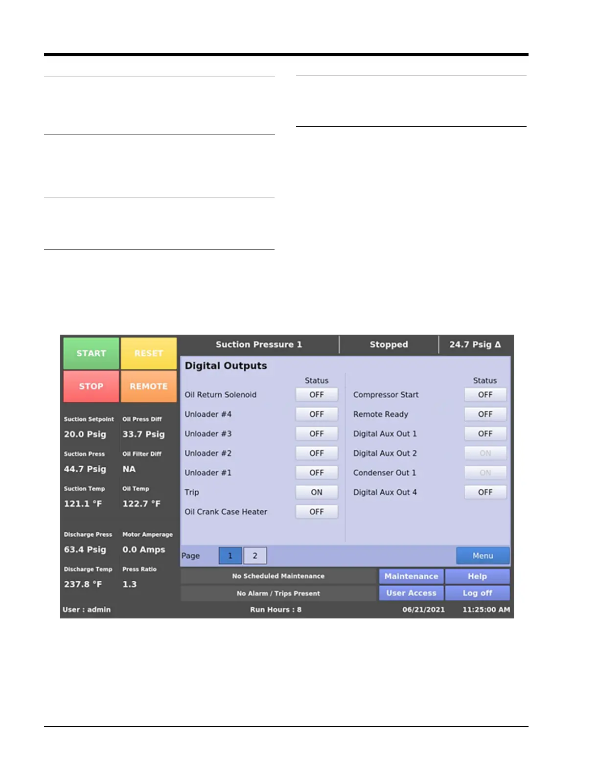 Figure 16-2. Service Options Screen Page 1 – Occupied Digital Outputs Disabled