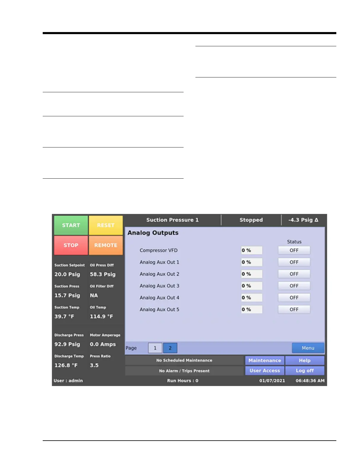 Figure 16-3. Service Options Screen Page 2 – Analog Outputs