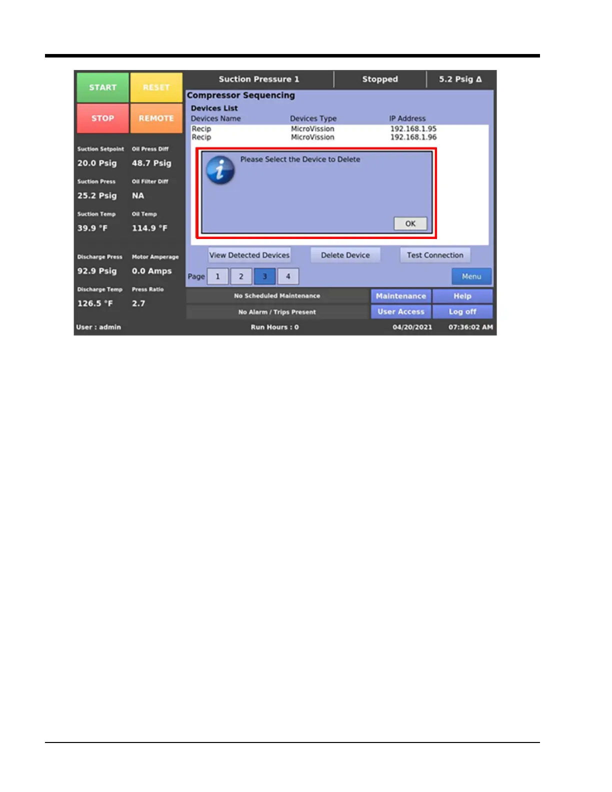 Figure 19-7. Compressor Sequencing Screen – Select Delete Device
