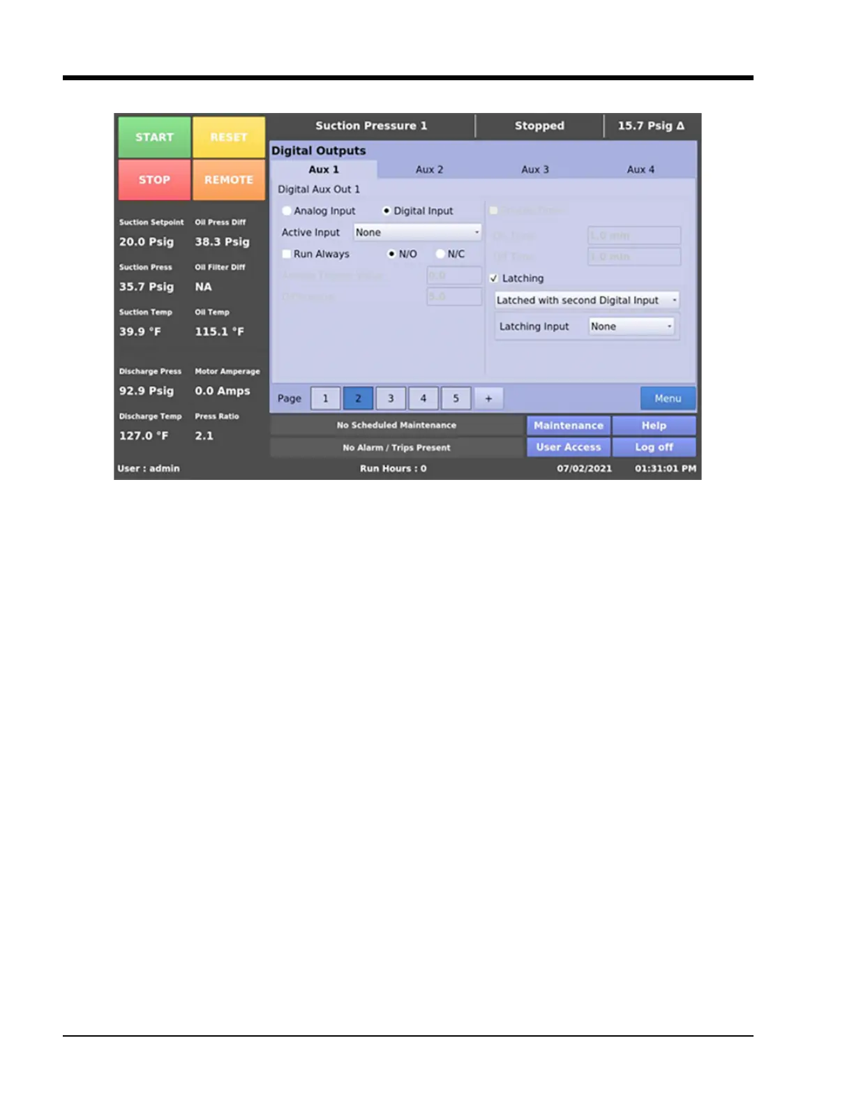 Figure 20-4. Auxiliary I/O Screen - Digital Outputs Latching Enabled with Digital Input (Page 2)
