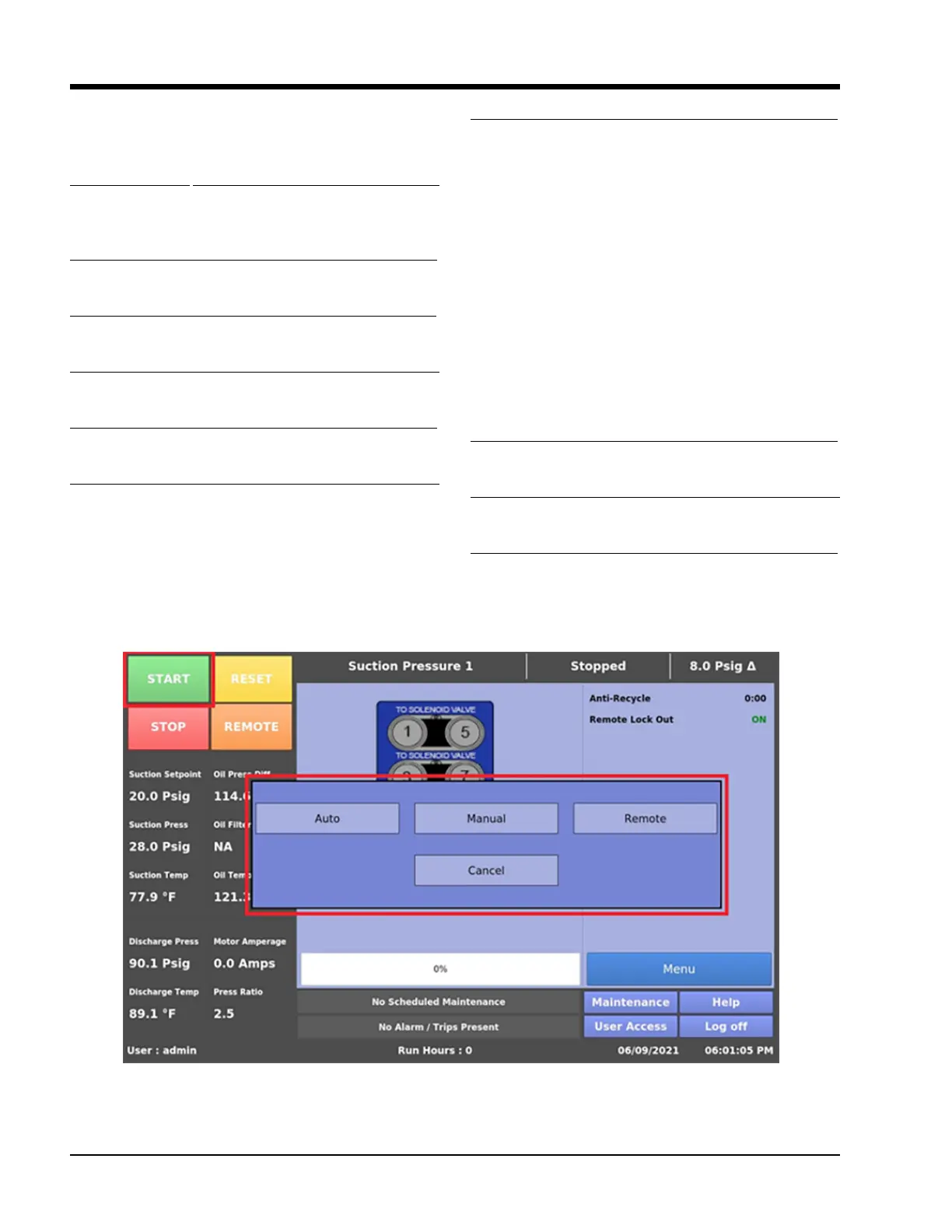 set in the Compressor Control Screen.