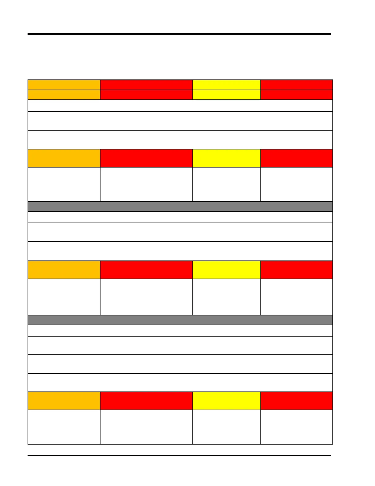 The following table lists all possible Warning, Inhibit,