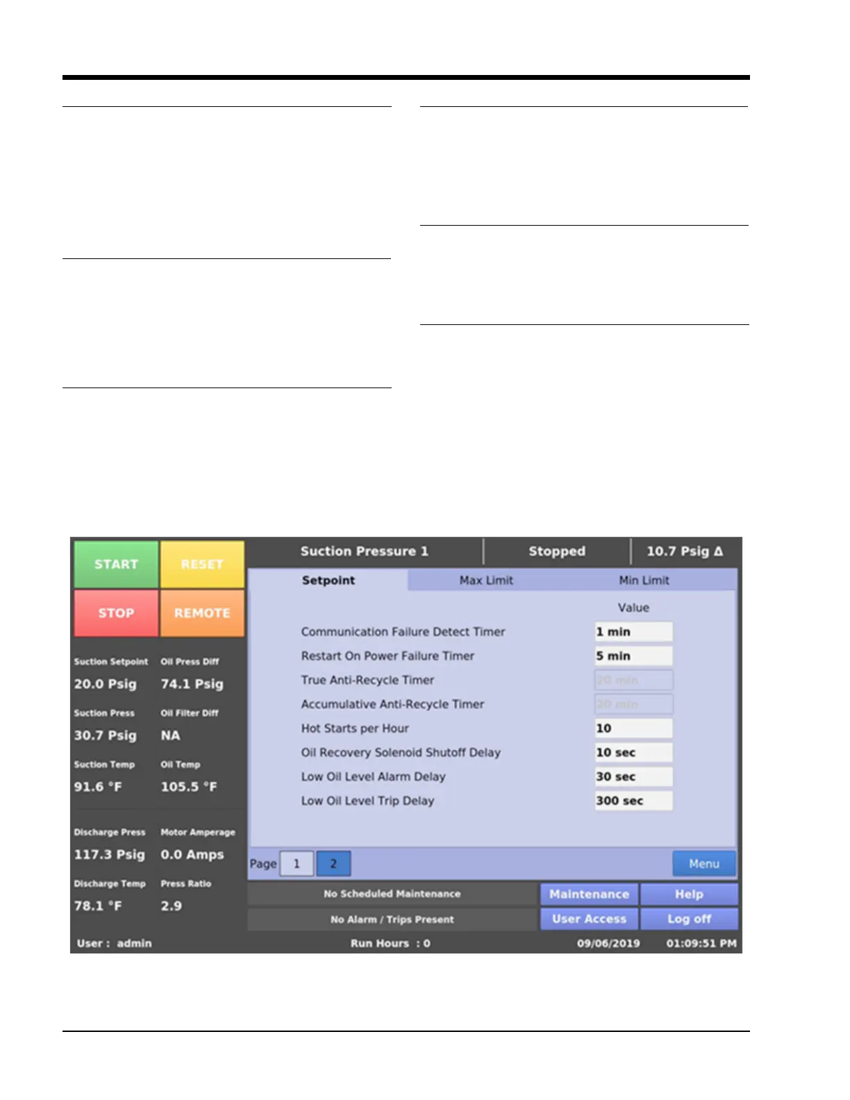 Pressure – Run” safety setpoints will become active.