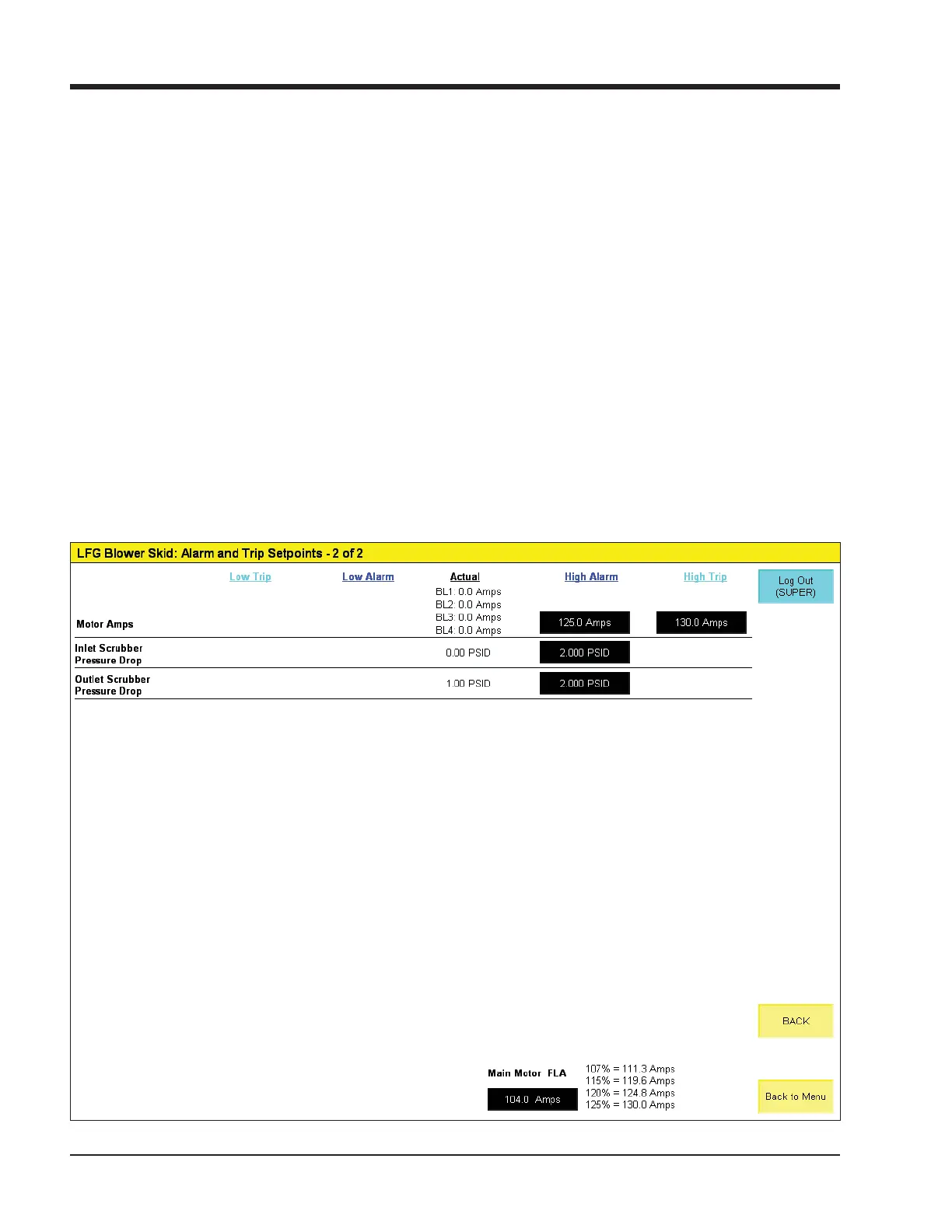 Figure 8-2. Alarm and Trip Setpoints Screen - 2 of 2