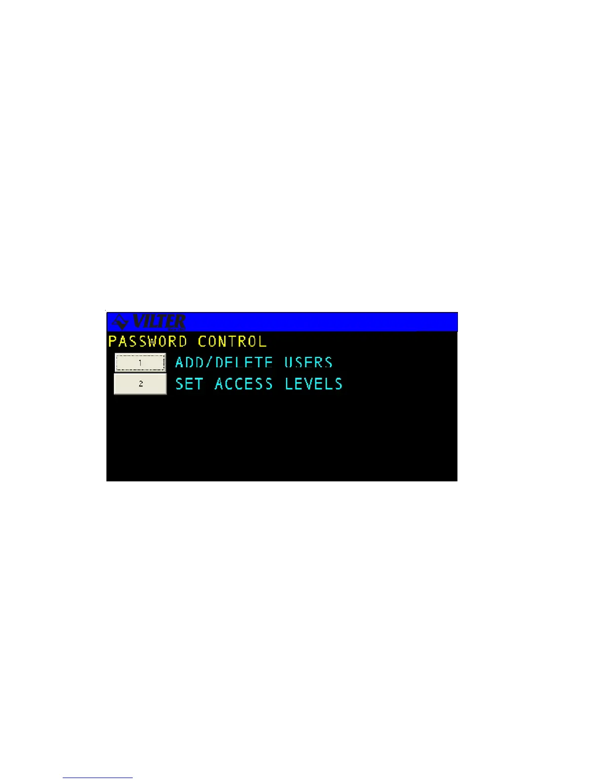 Viltech password protection is controlled through two system screens, the Add Delete User