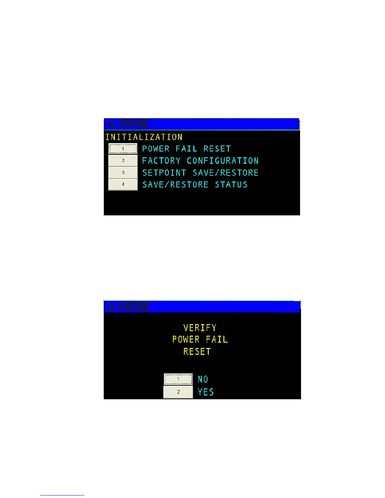 occurred. When the user selects POWER FAIL RESET, a confirmation screen will be displayed asking the user to