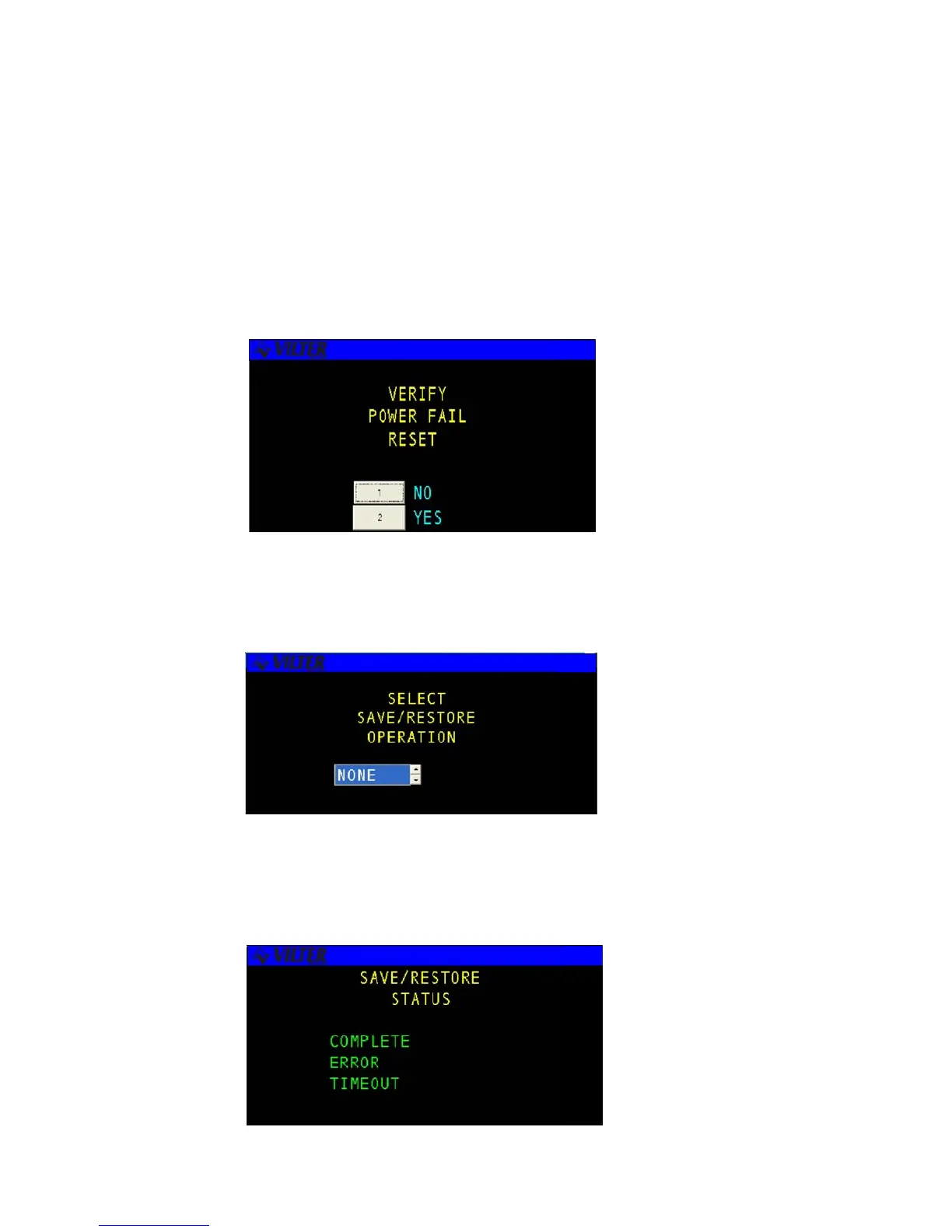 This selection allows the user to reset the system to factory default values. When the user selects the SET