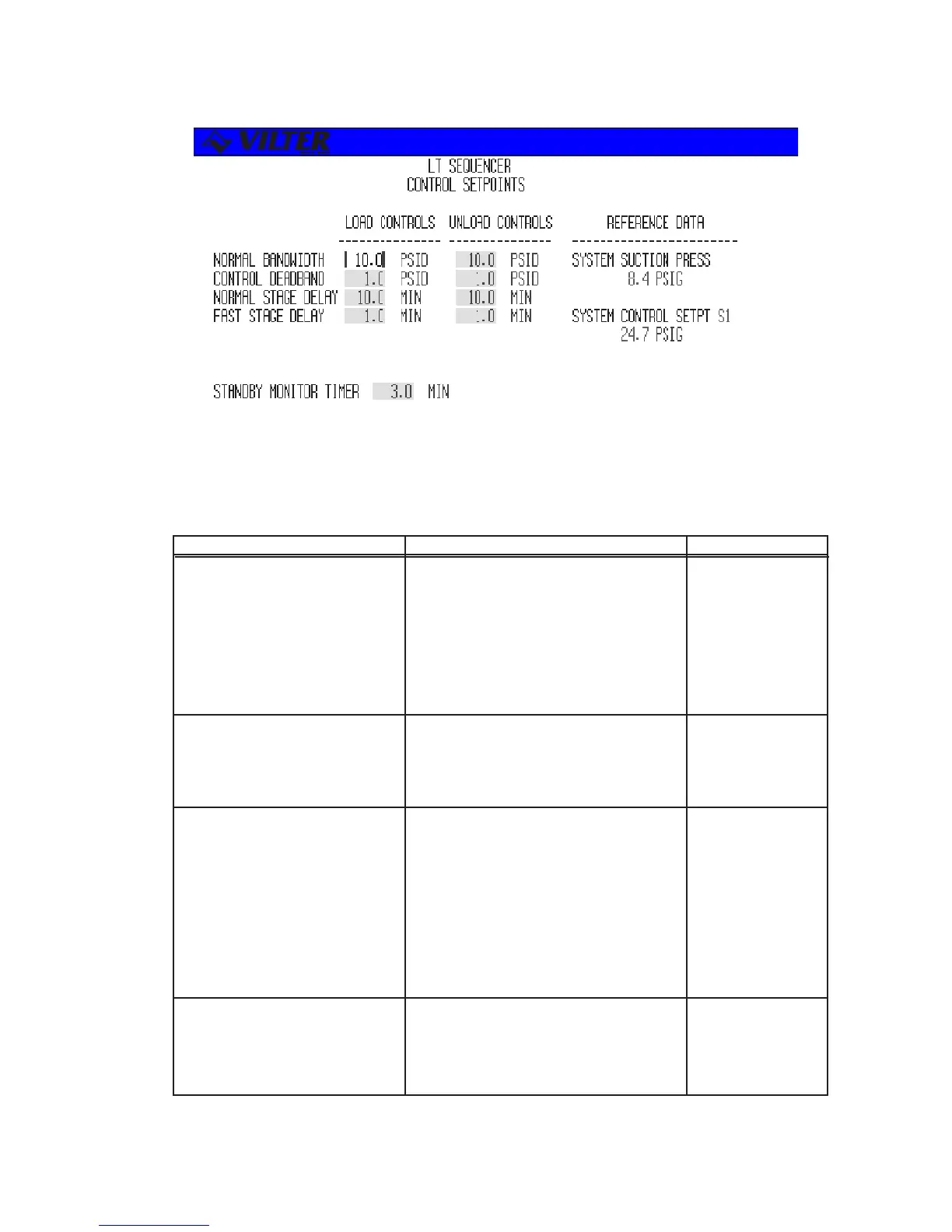 SEQ CONTROL DEADBAND The sequencer load and unload control 0 - 20 PSID