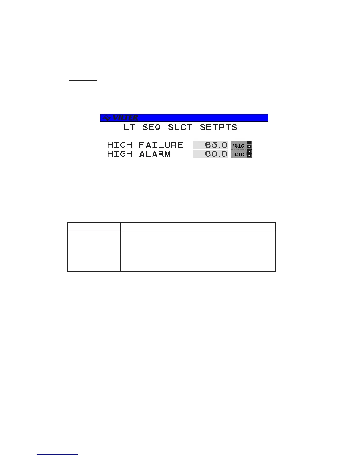 HIGH FAILURE If the system control parameter is above this value, a failure