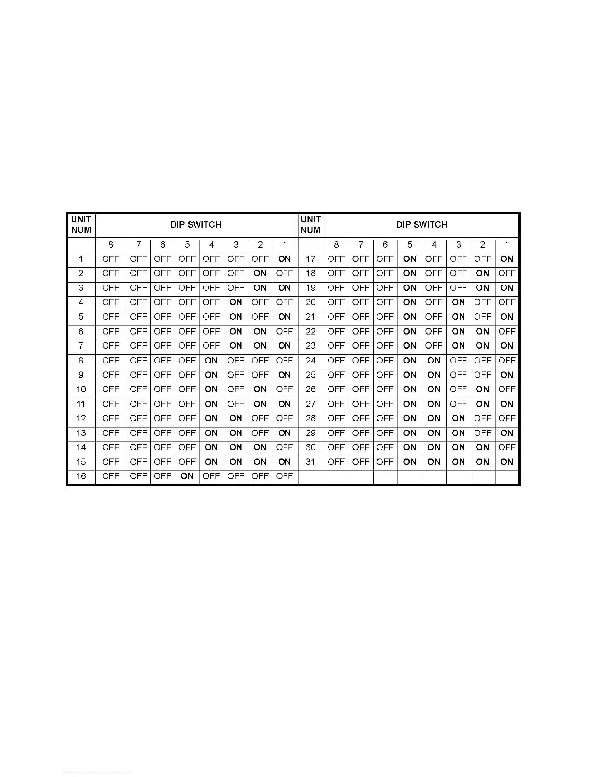 following table shows the dip switch settings for up to 31 individual RECIP compressors.