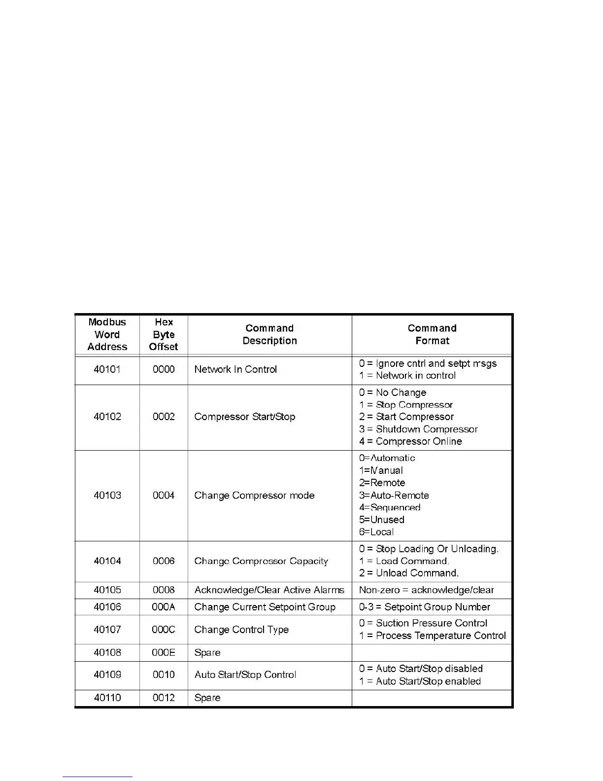 The Control Message is a read/write message containing fields to start and stop the compressor, change the