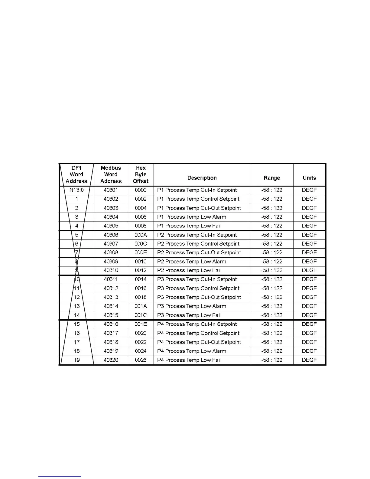control option is enabled. Process Temperature setpoints may be read or written individually or in groups.