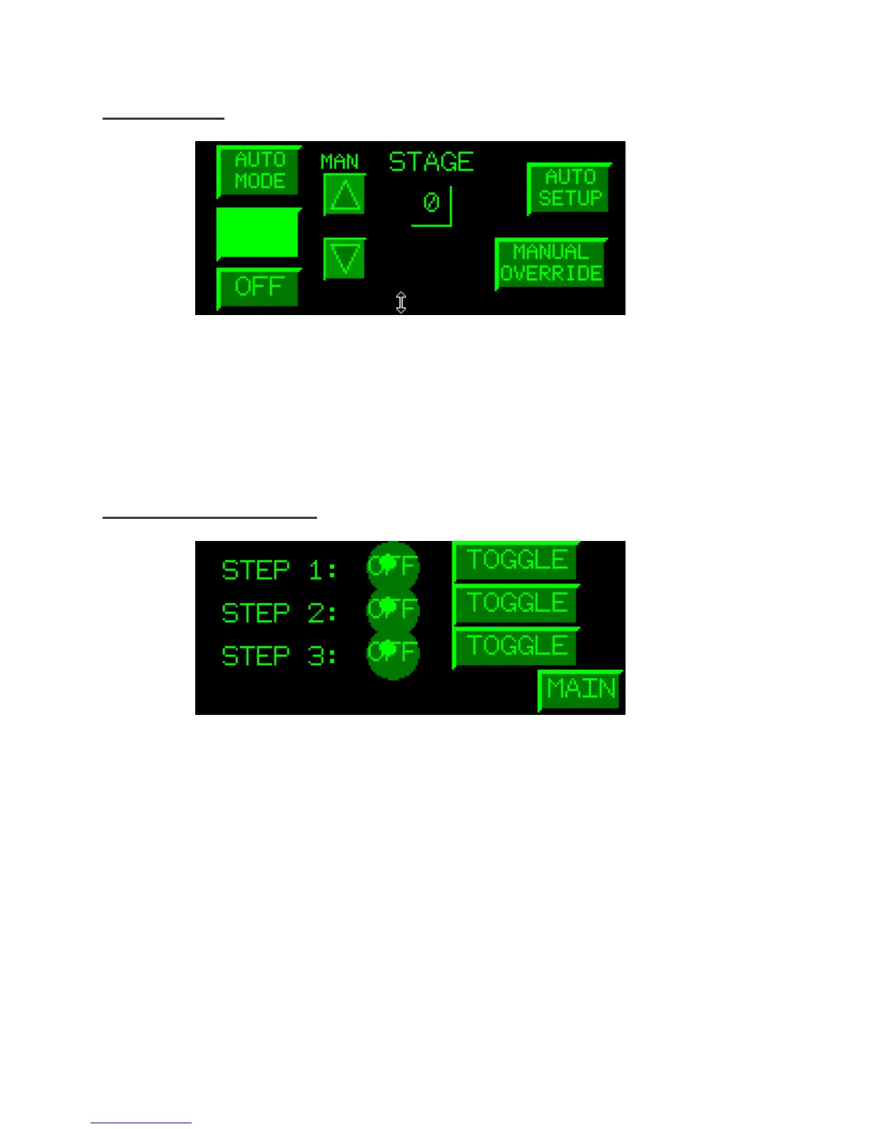 To enter the Manual Override Screen touch the MANUAL OVERRIDE but-