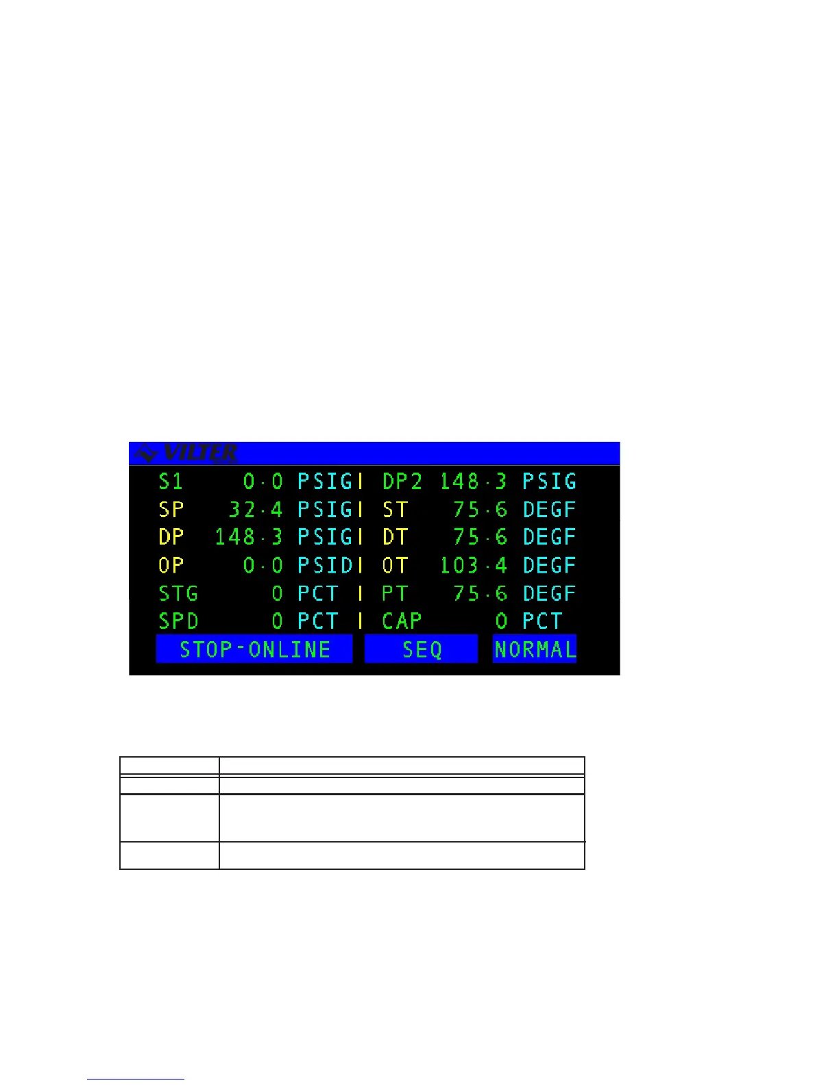 The operator may view each of the system’s available status screens by scrolling through