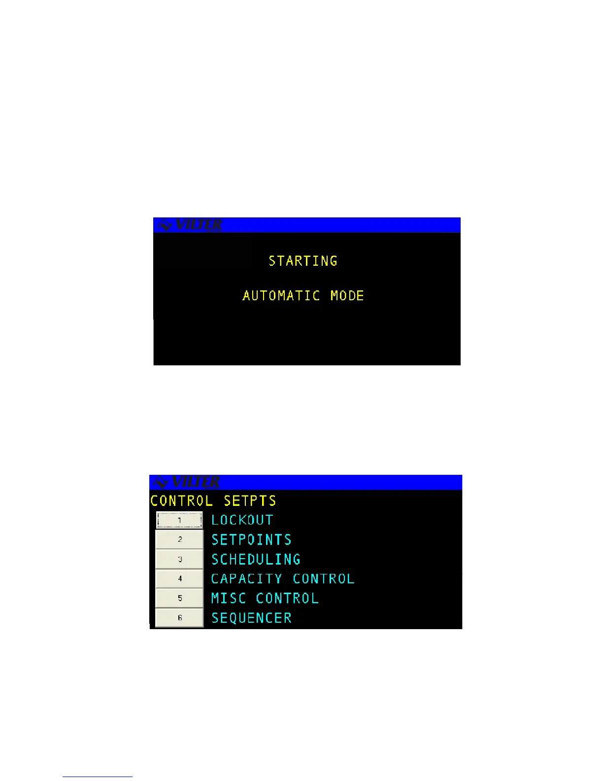SETPT key is selected, a menu screen displays the available options contained on the system.