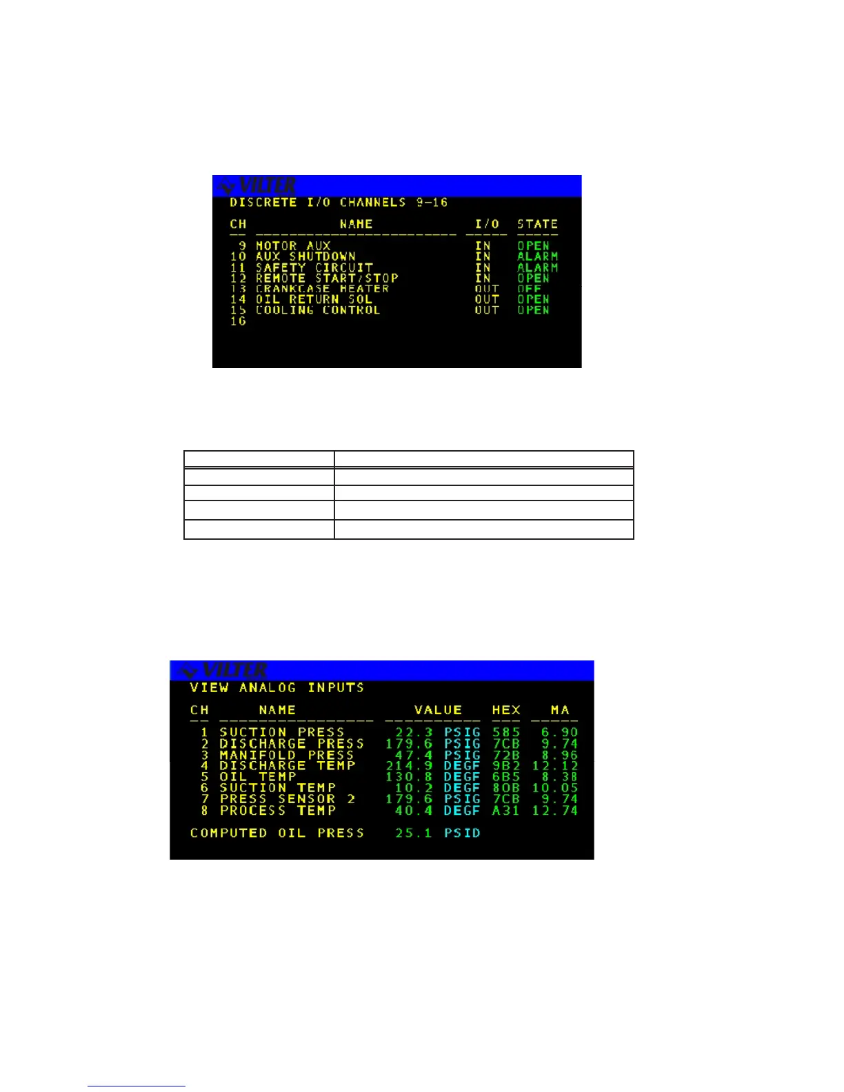 The VIEW ANALOG Inputs screen can be viewed by the operator and will be displayed on a screen similar to the