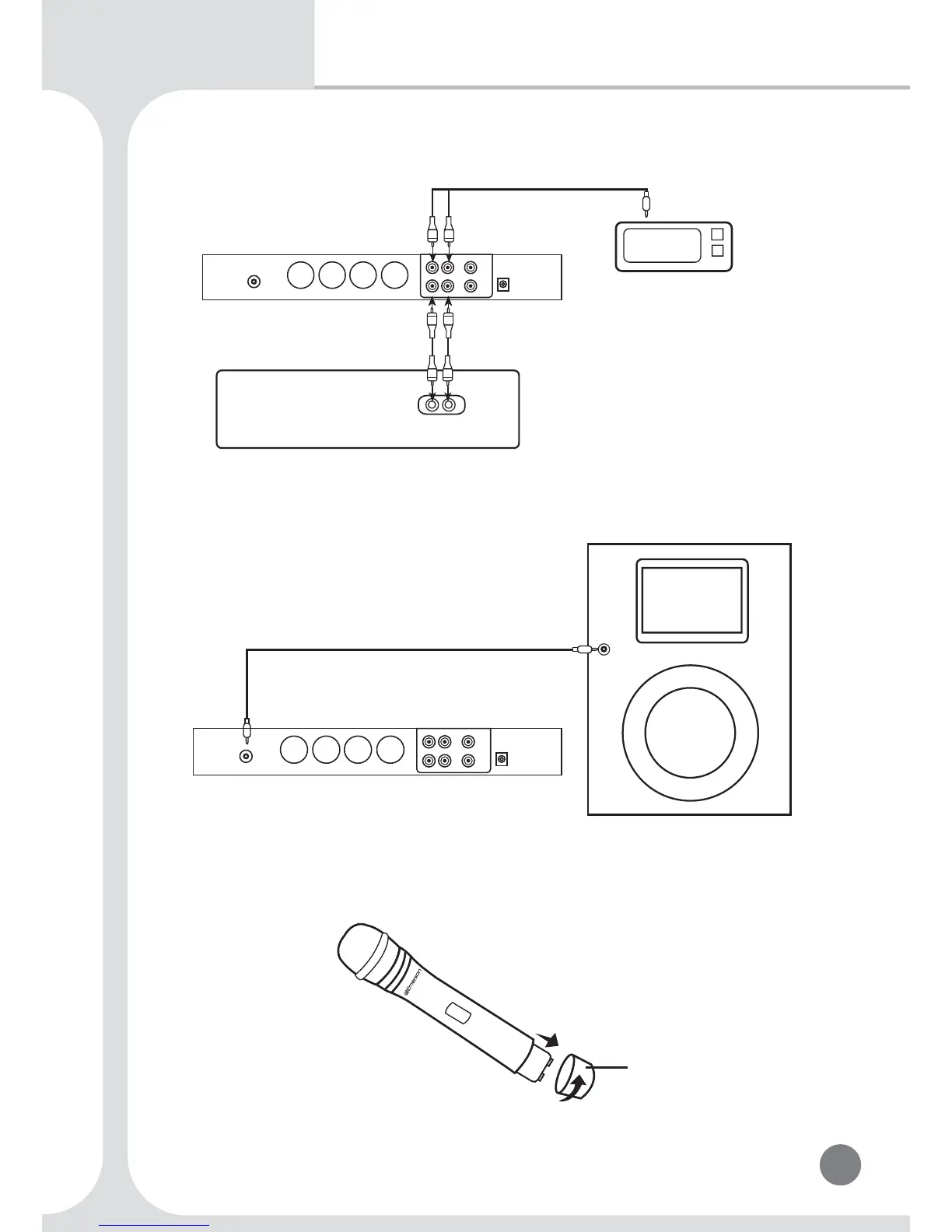 1/4 inch Jack Plug out of back of WM340 to mic input on Karaoke Machine.