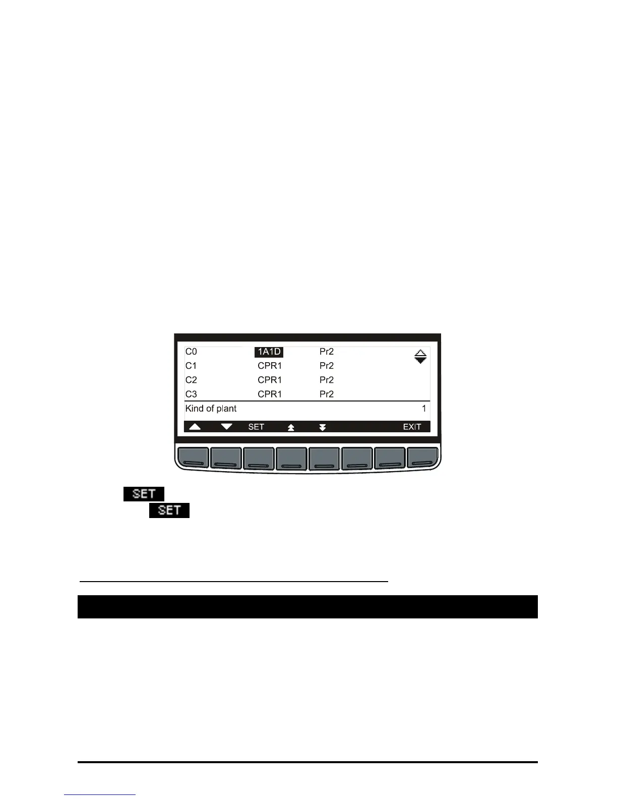 Push the SET key to enter a menu and the parameter with their value will be displayed: see below