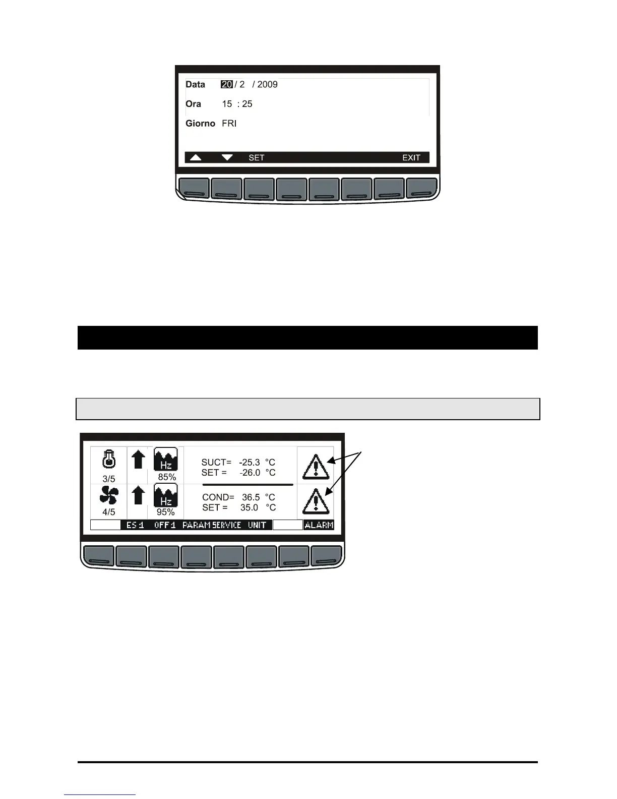 NOTE: to memorise the alarms and to enable the automatic energy saving cycle the real