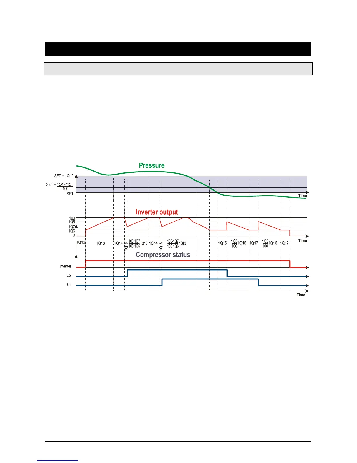 The regulation of the compressors in this case is changed as described in the following graph: