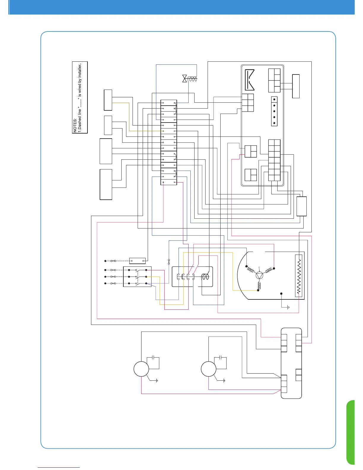Dashed line " " is wired by installer.