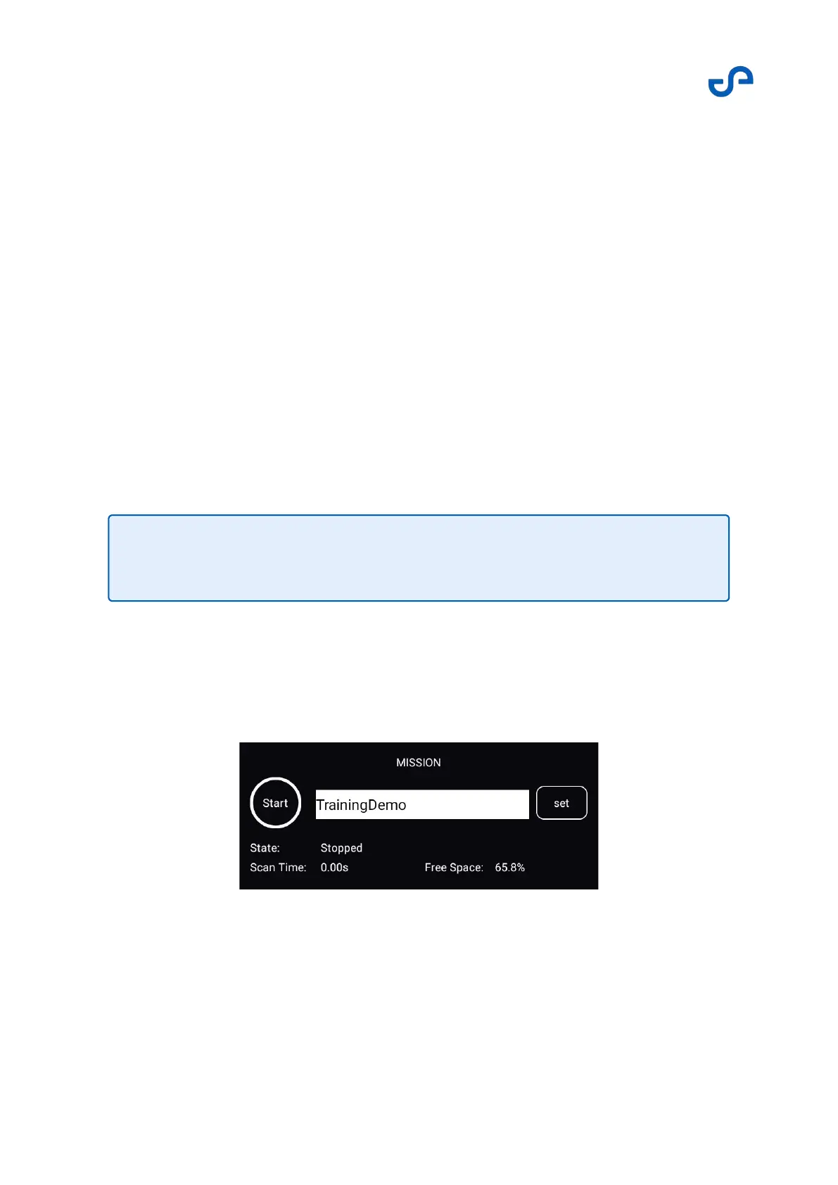 Press the Mission button to open the menu. The mission settings allow you to set the scan name, or to