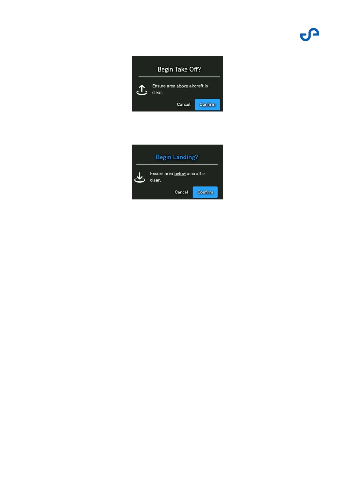 emesent HOVERMAP-ZOE - Figure 40 Confirmation: Begin Takeoff; Figure 41 Confirmation: Begin Landing