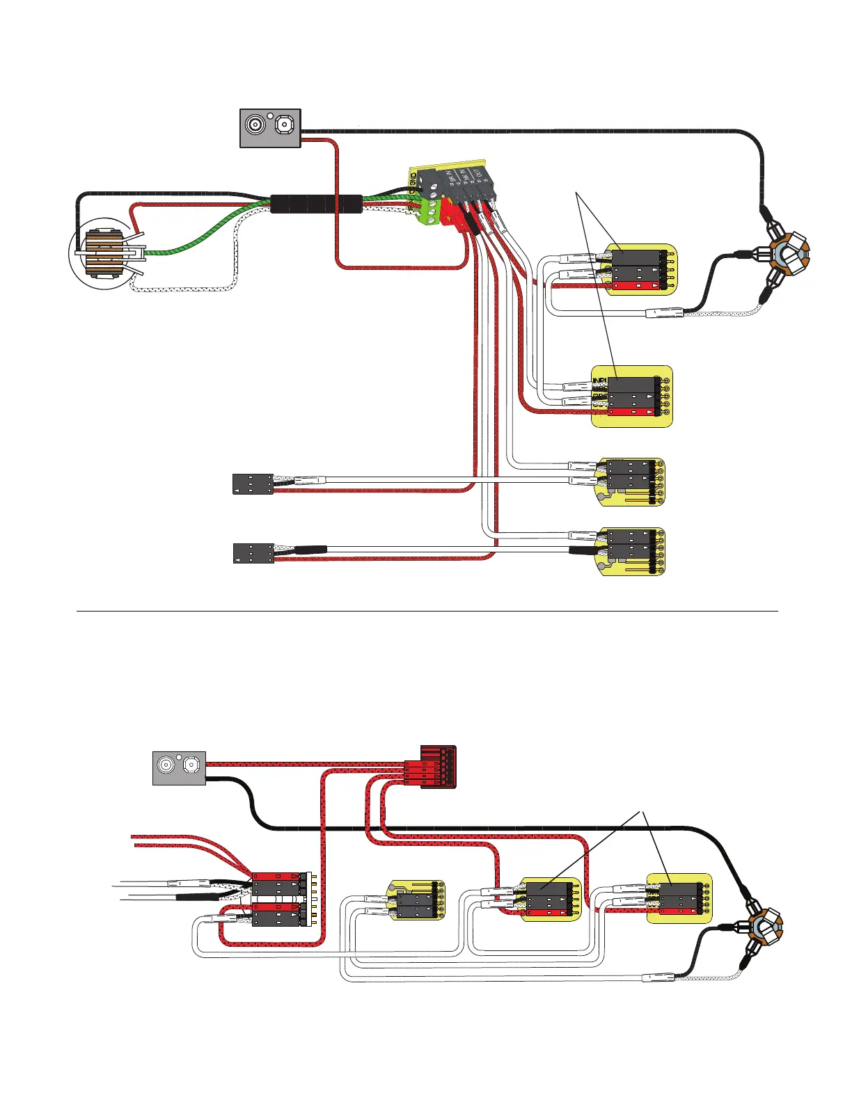 This diagram illustrates an installation using the X Series pickups from EMG