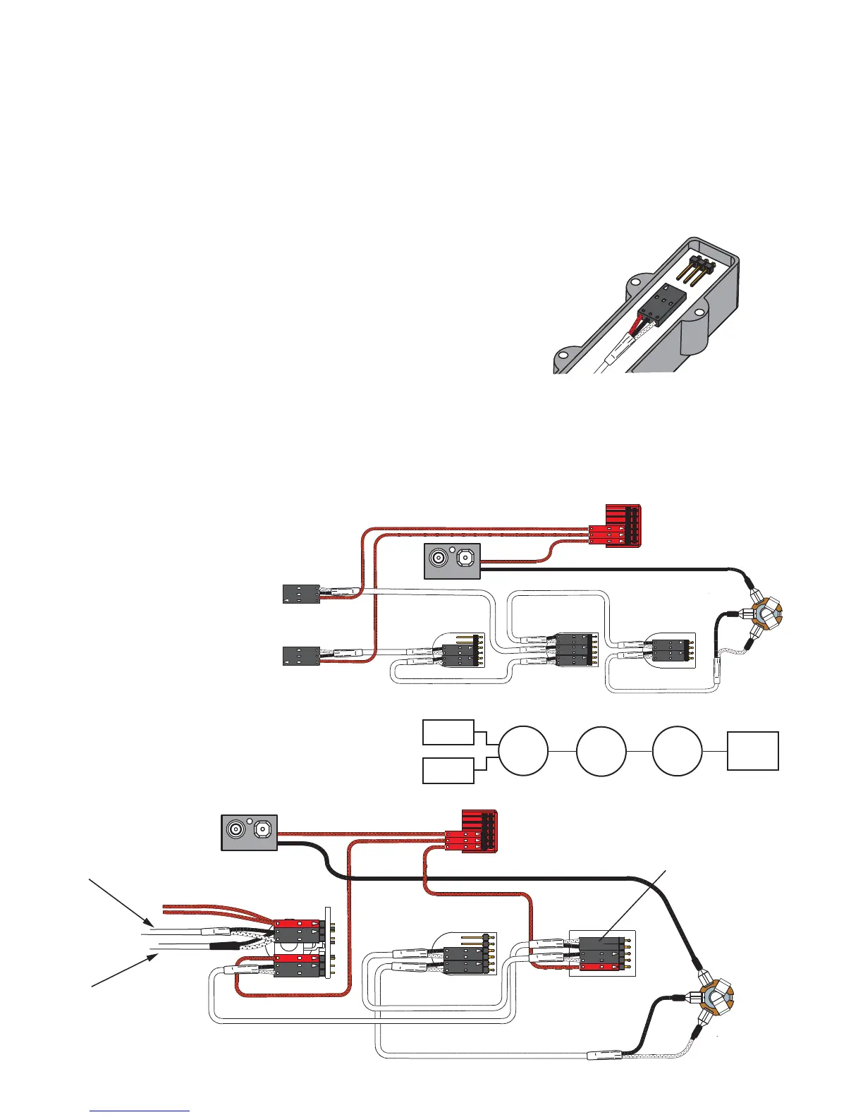 6) Plug the RED Wires of the pickups onto the V+ Supply Buss (RED Shroud)